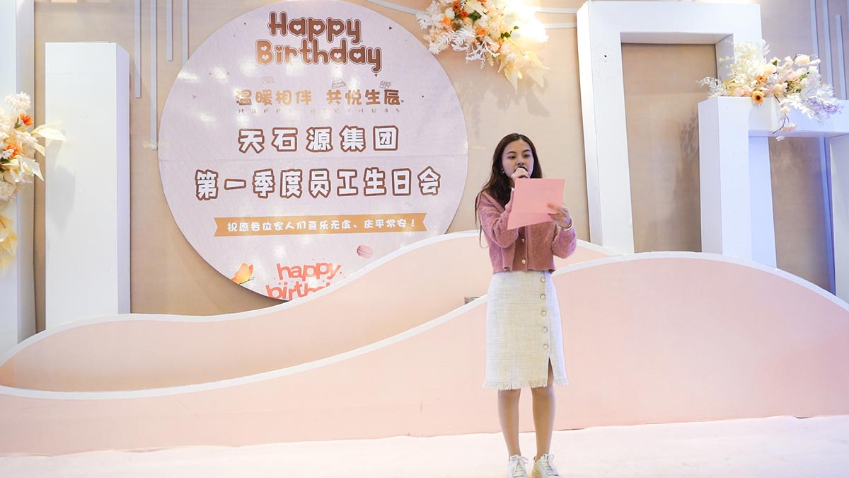 【概要描述】春风轻拂,四月的花朵在淡然宁静中悄然绽放,在这鸟语花香的日子里,我们满怀着期盼和祝福,迎来了天石源2024年第一季度员工生日会。一份祝福,一份真诚,愿所有的幸福、所有的温馨、所有的好运都永远围绕在天石源人的身边!